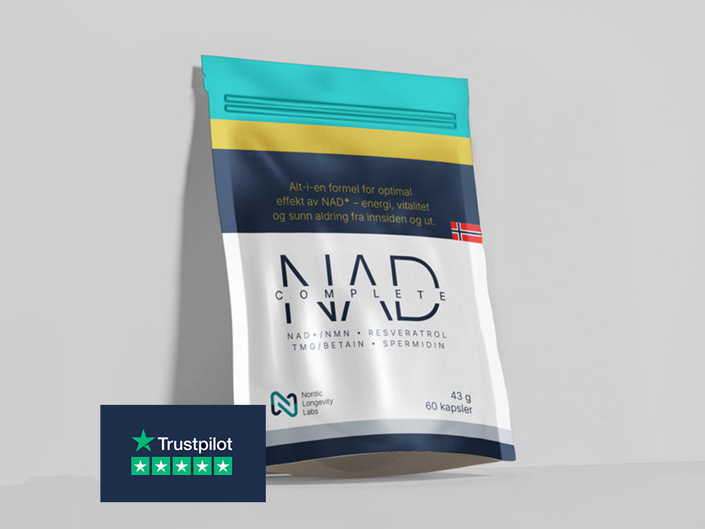 NAD Complete is an all-in-one supplement that combines NMN, Resveratrol, TMG and Spermidine. This unique blend supports the body's natural NAD⁺ levels, energy, cell renewal and healthy aging - all in one capsule.